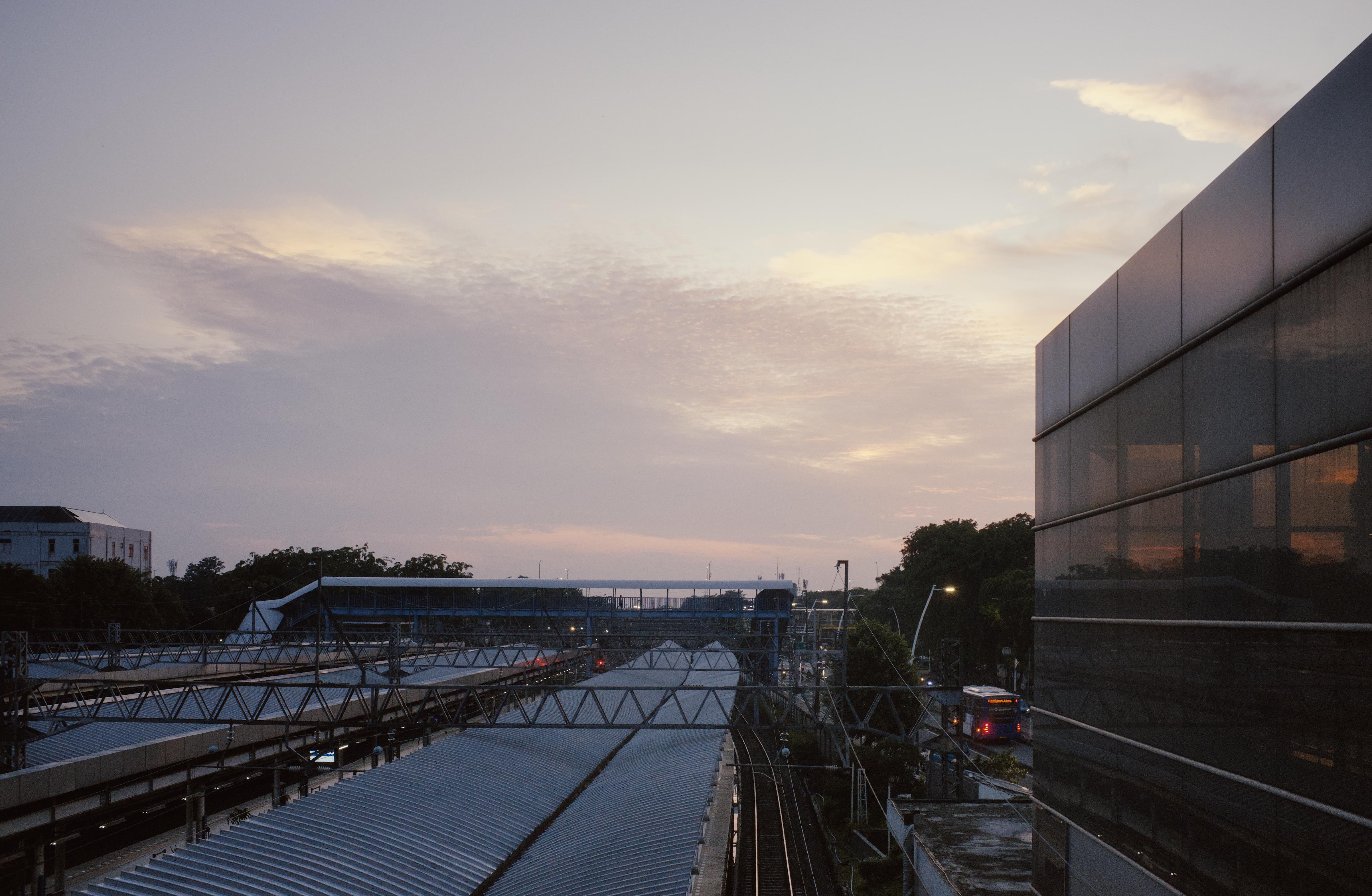 November 1st, 2025—Jatinegara Station. Morning view with sunrise and brittle clouds.