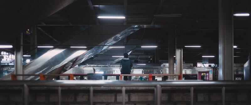 November 1st, 2025—A man sits alone at Jatinegara Station in the early morning, where the first light meets the quiet rhythm of departing trains.